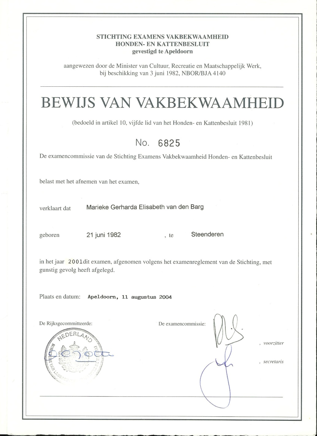 De volgende diploma’s zijn in mijn bezit: